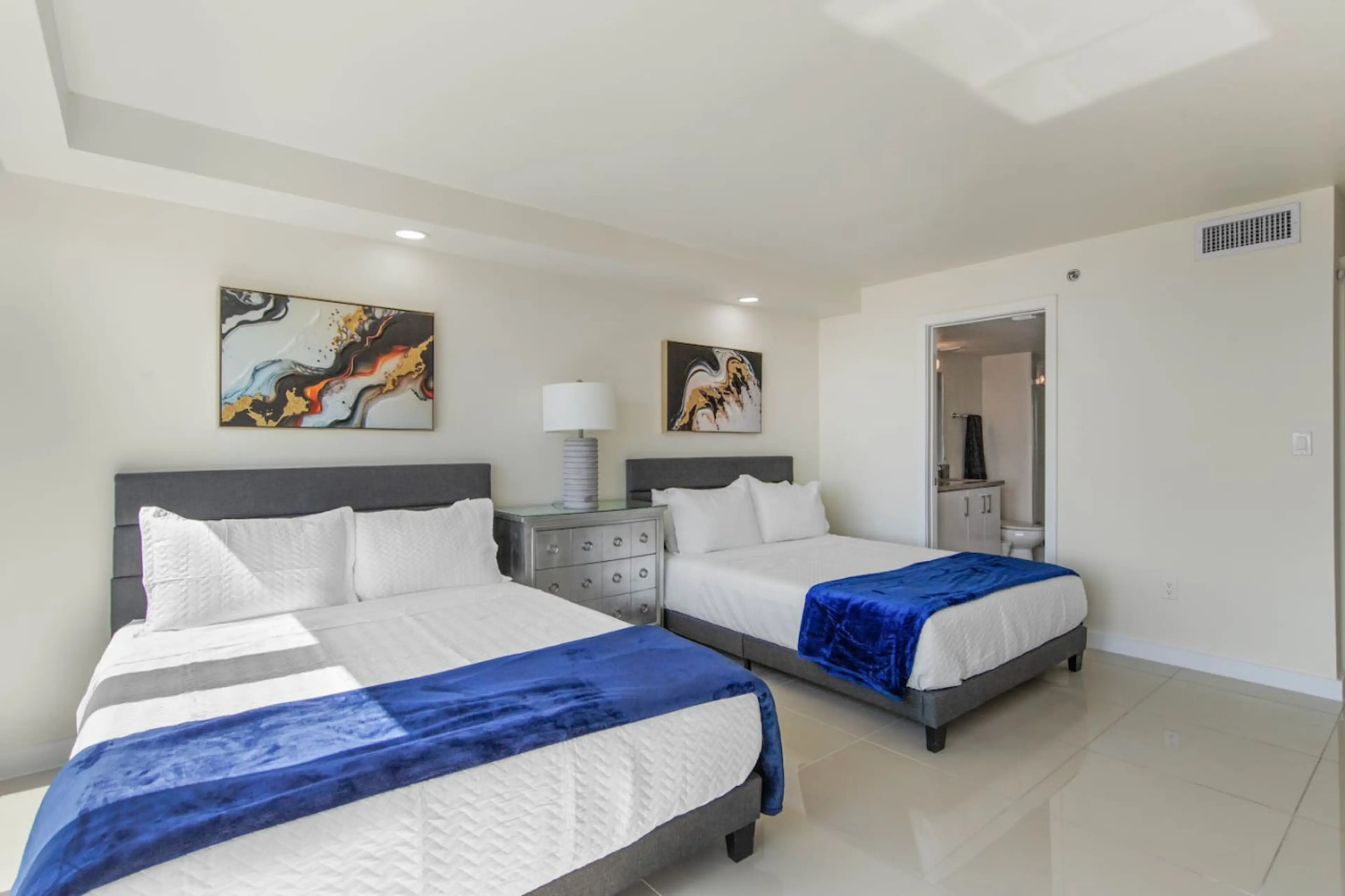 Lovely condo. Spacious bedrooms, very nicely decorated. The view of the bay and the island strip was great. You get to see the beach side of the ocean and the bayside. Really enjoyed the view. It had all we needed kitchen wise for our stay. Would stay there again.